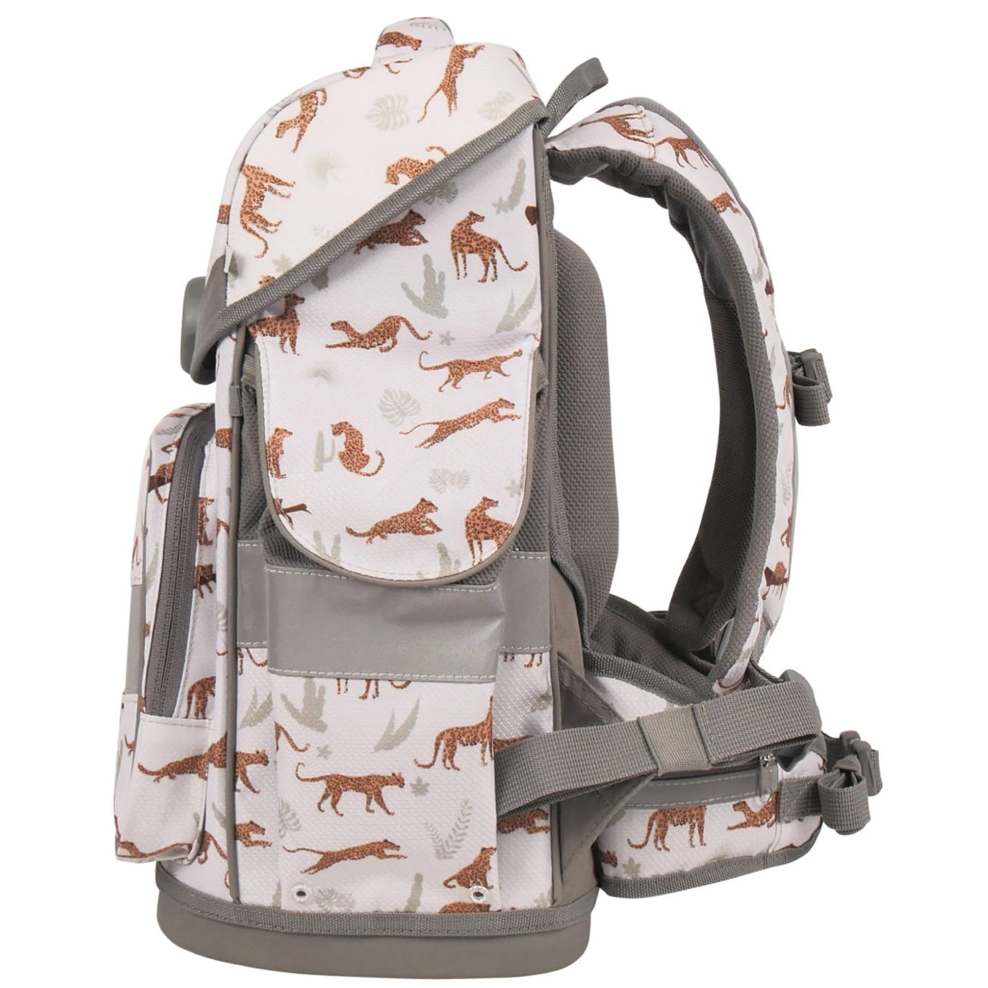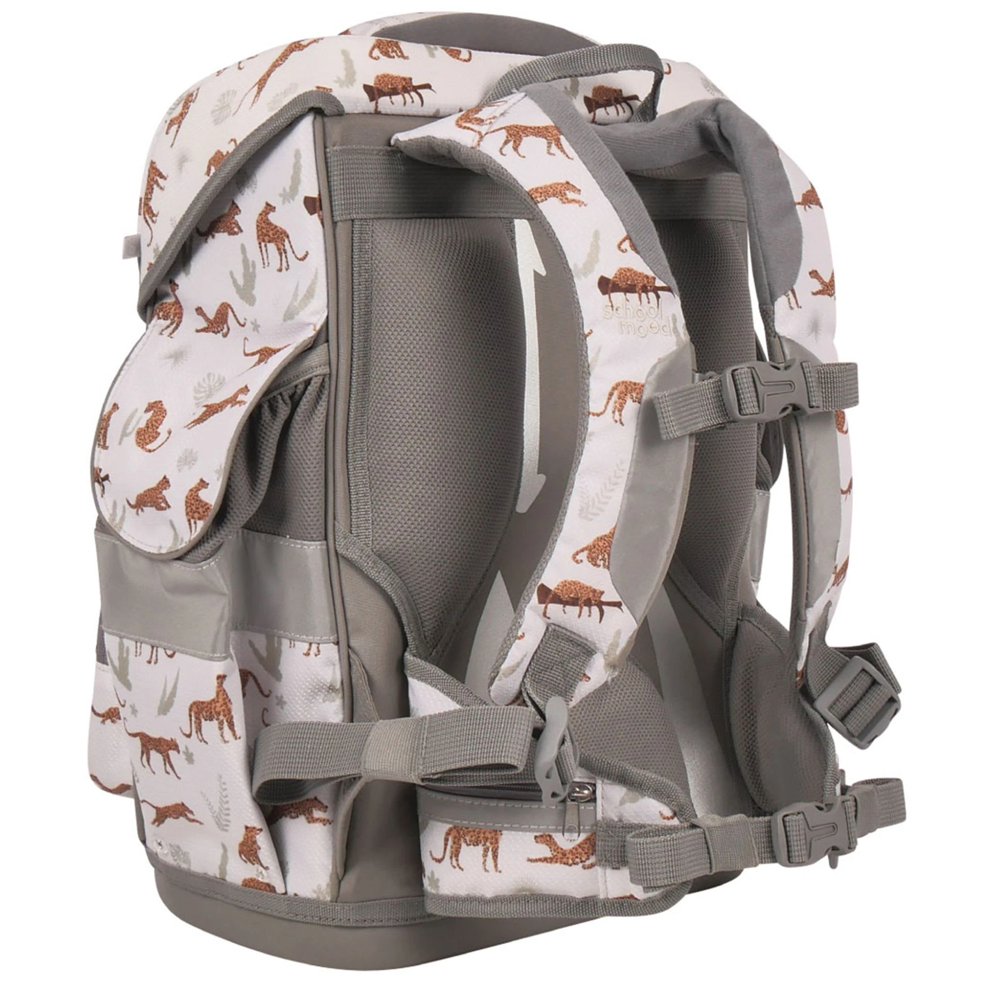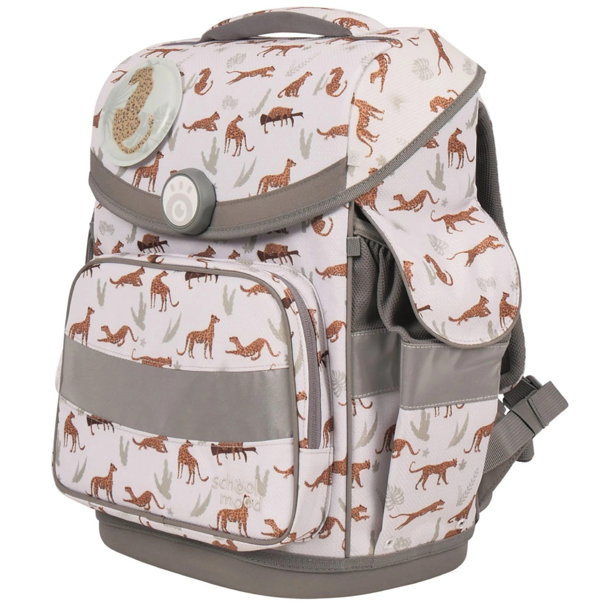 7-teiliges Schulranzen-Set von School-Mood, bestehend aus Schulranzen, Sportbeutel/Turnbeutel, Schüleretui (23-tlg.), Schlamperrolle, Brustbeutel, Brotdose und 3 Patchies. Klassischer Schulranzen der Timeless Air+ Serie ist robust, leicht zu reinigen und lässt keine Wunsche offen. Selbstschließender Magnetverschluss ermöglicht ein kinderleichtes Öffnen und Schließen des Deckels. Das mitwachsende, ergonomisch geformte Tragesystem mit Brust- und Beckengurt bietet hervorragenden Tragekomfort und optimalen Sitz. Im Inneren ist der Schulranzen bestens ausgestattet und bietet Ordnung, Übersicht und viel Stauraum für Hefte, Bücher, Federmäppchen, Brotdose usw. Reflektierende Elemente sorgen für Sicherheit bei Dunkelheit. Mit wechselbaren Patchies für Motivaustausch lässt sich der Schulranzen immer neu und individuell gestalten. Dank integrierter Halterung kann der Sportbeutel am Schulranzen befestigt werden. Etui ist komplett bestückt (21tlg.) und verfügt über einen Stundenplan.