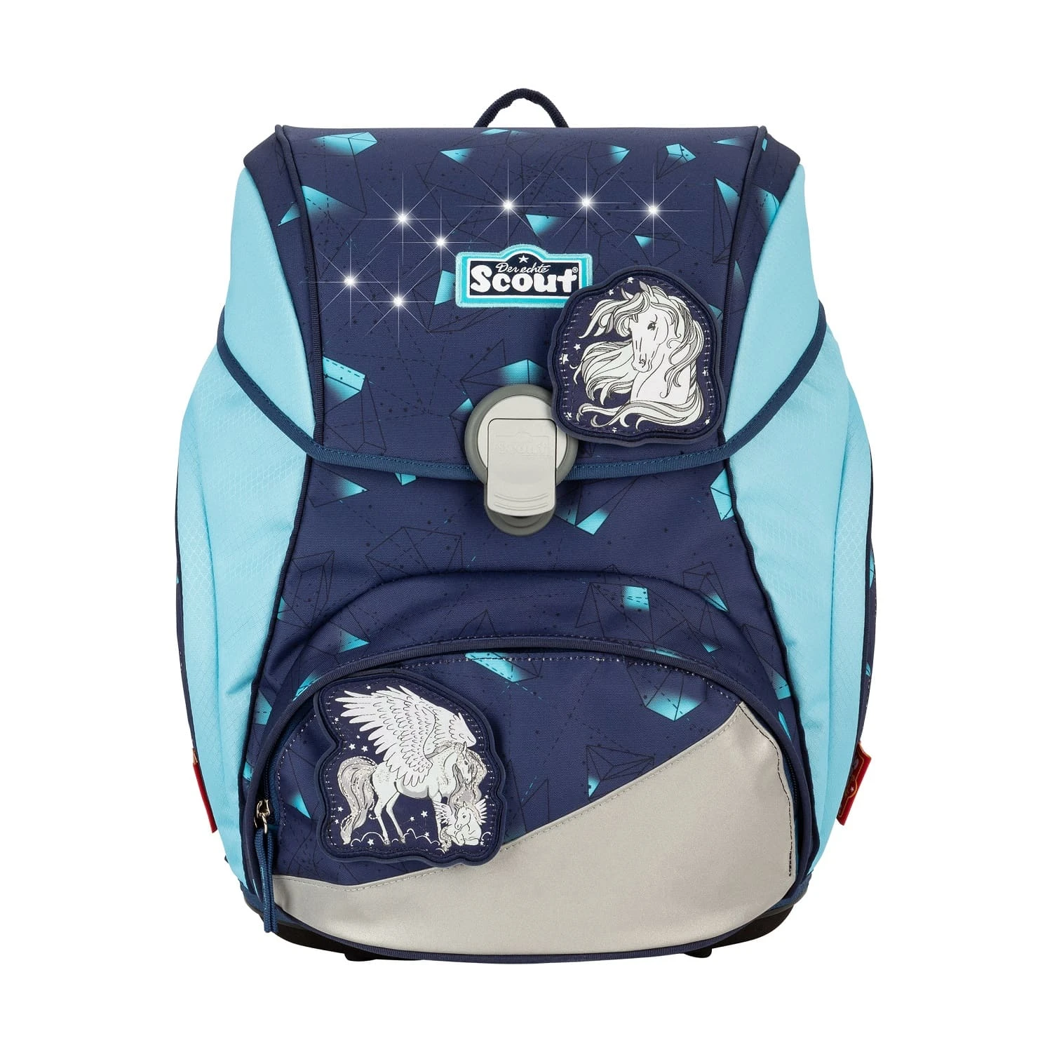 Der Scout Alpha ist soft, geräumig und lässig. Mit den sieben blinkenden LED-Lichter und den retroreflektierenden Flächen ist der Schulranzen besonders auffällig und sorgt für mehr Sicherheit auf dem Schulweg. Das höhenverstellbare Tragegurtsystem ist besonders rückenschonend und wächst während der gesamten Grundschulzeit einfach mit. Der Schulranzen wurde mit einem ergonomischen und atmungsaktiven Rückenpolster entwickelt und passt sich somit gut an den Rücken Ihres Kindes an. Öffnen und schließen lässt sich der Rucksack durch ein Magnetschloss und ein zusätzliches Tunnelzug-System.
