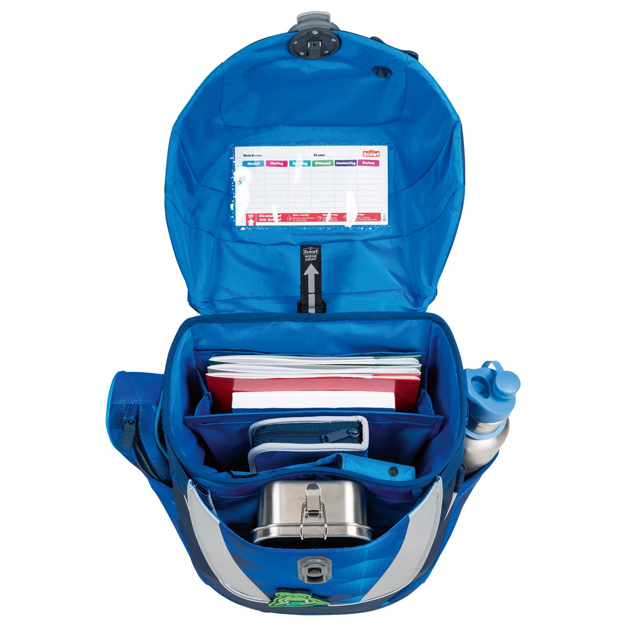 Der 4-teilige Schulranzen-Set von Scout, beinhaltet einen Schulranzen, eine Sporttasche mit Nassfach, ein Schlamper Etui und ein 23-teiliges Etui. Zusätzlich sind an mehreren Stellen LED Lichtleiter powered by Osram integriert, um positiv unterwegs aufzufallen und eine Powerbank mit Taschenlampefunktion, die ohne Batterie verwendet werden kann. Für einen kraftsparenden Tragekomfort und einen optimales Sitz des Schulterbereichs in jeder Wachstumsphase gibt es ein höhenverstellbares Tragegurtsystem mit integriertem Hüftgurt. Dieses Tragegurtsystem passt sich dem wachsenden Kinderrücken sehr gut an. Schulranzen Außenmaß: 30 cm x 20 cm x 39 cm / Gewicht: ca. 1.180 g / Volumen: ca.18,5 l