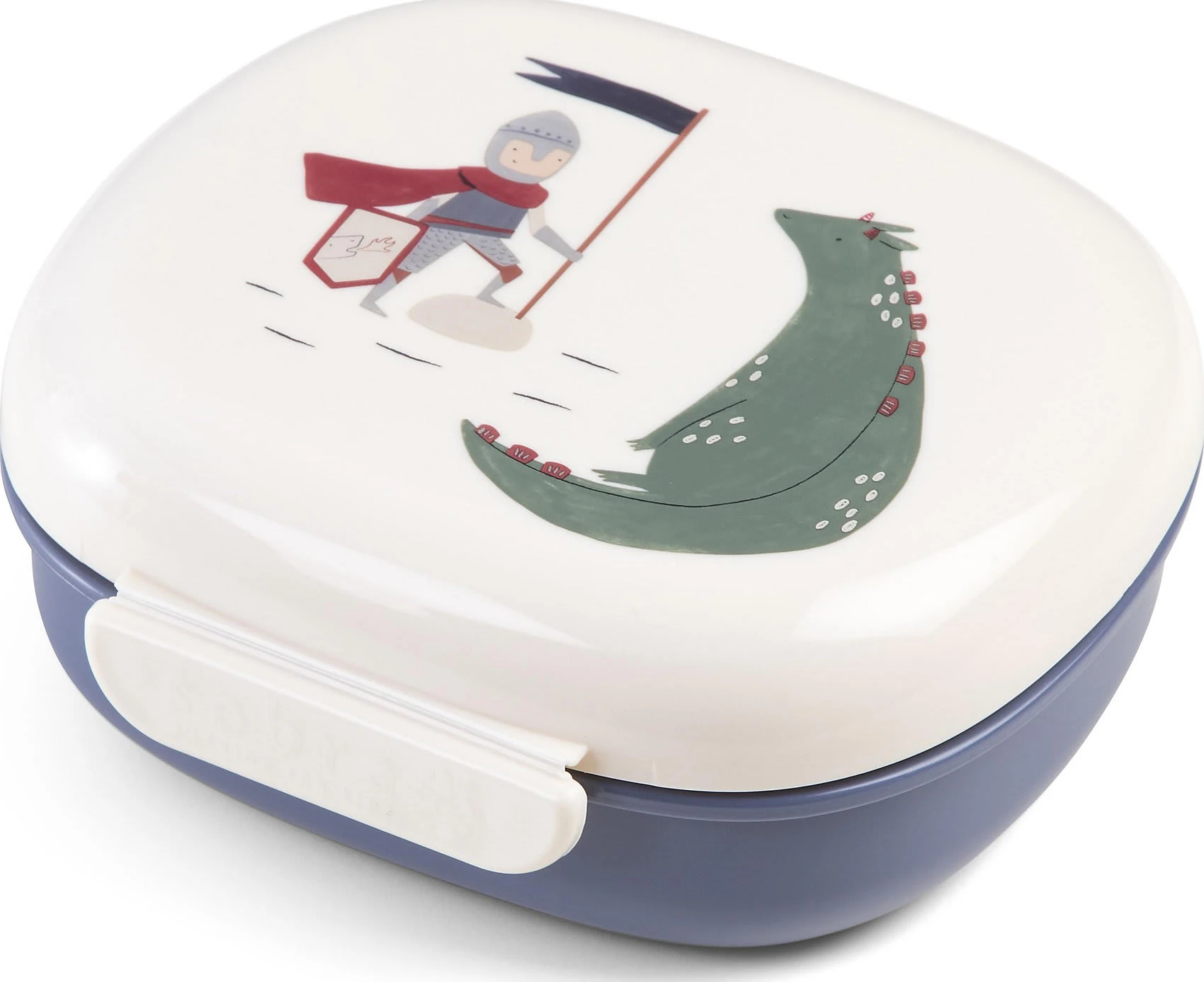 Die Brotdose “Dragon Tales” von sebra interior for kids besticht mit ihren coolen Motiv und ist sowohl im Schulalltag als auch bei Ausflügen ein praktischer Begleiter. Die Trennwand im Inneren der Dose kann flexibel verschoben werden, so dass die verschiedenen Lebensmittel getrennt voneinander und appetitlich aufbewahrt werden.