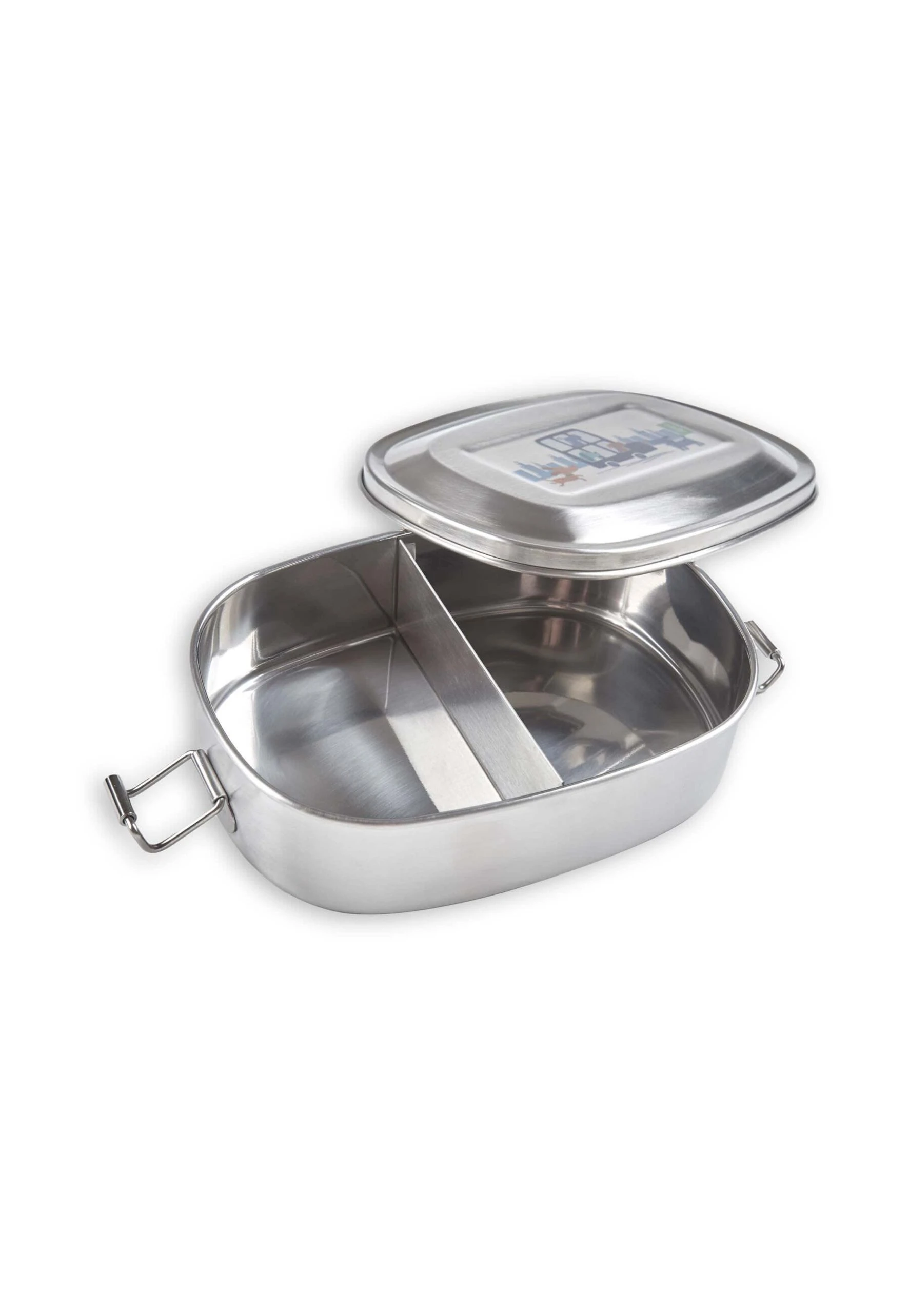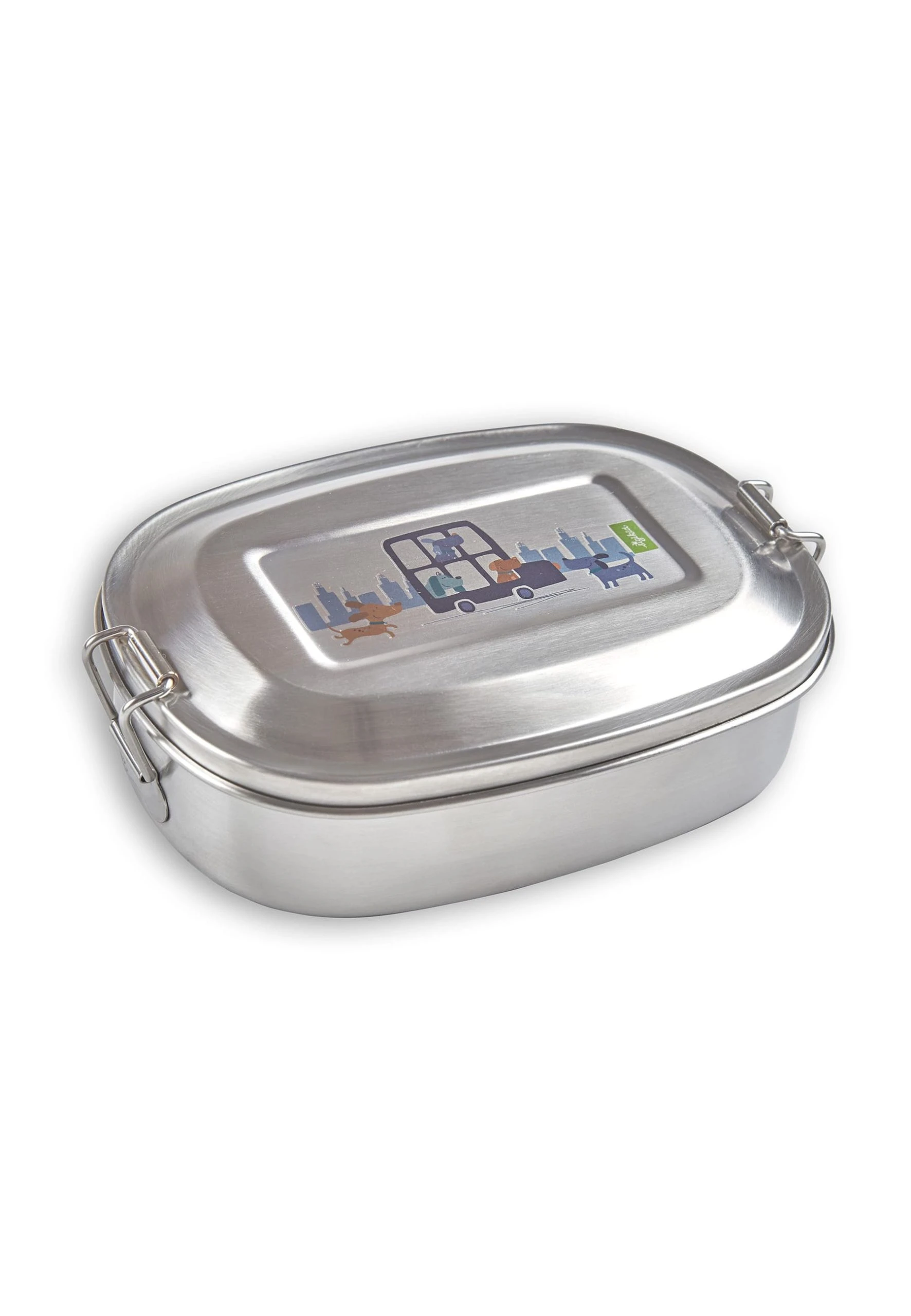 Zu 100 % aus Edelstahl, unzerbrechlich, robust und langlebig und somit besonders nachhaltig sind die neuen Brotdosen der sigikid Green Serie. Ihr schlichtes Design und ihre handliche Größe von 17x9x5 cm machen sie zu einem beliebten Begleiter für Schule, Kindergarten und Ausflug. Dank Trennwand im Innern der Dose können Obst und Gemüse separat aufbewahrt werden. So bleibt das Pausenbrot appetitlich und weicht nicht auf. Hergestellt wird die Lunchbox aus lebensmittelechtem Edelstahl, welches absolut geschmacks- und geruchsneutral sowie hitzebeständig ist. Auf eine Innenbeschichtung wurde bewusst verzichtet. Um den farbigen Print zu schonen, empfehlen wir die Reinigung per Hand. sigikid legt besonderen Wert auf ausgesuchte Materialien und durchdachtes Design. Durch akkreditierte Prüfinstitute finden in der Produktentwicklung und Produktion ständig Prüfungen nach den vorgeschriebenen Normen statt. Die Marke sigikid steht für kuschelige Produkte, die Emotionen wecken und Eltern und Kindern gleichermaßen ein gutes Gefühl vermitteln. Seit über 50 Jahren folgt sigikid einem klaren Leitsatz: FIRST CLASS FOR KIDS! Wir machen die Welt von Familien von Anfang an kuscheliger und bunter. Achtung! Deckel nicht mit kochend heißem Wasser übergießen, Motiv kann verwischen! Vor dem ersten Gebrauch bitte ausspülen. Deckel nicht Spülmaschinengeeignet!