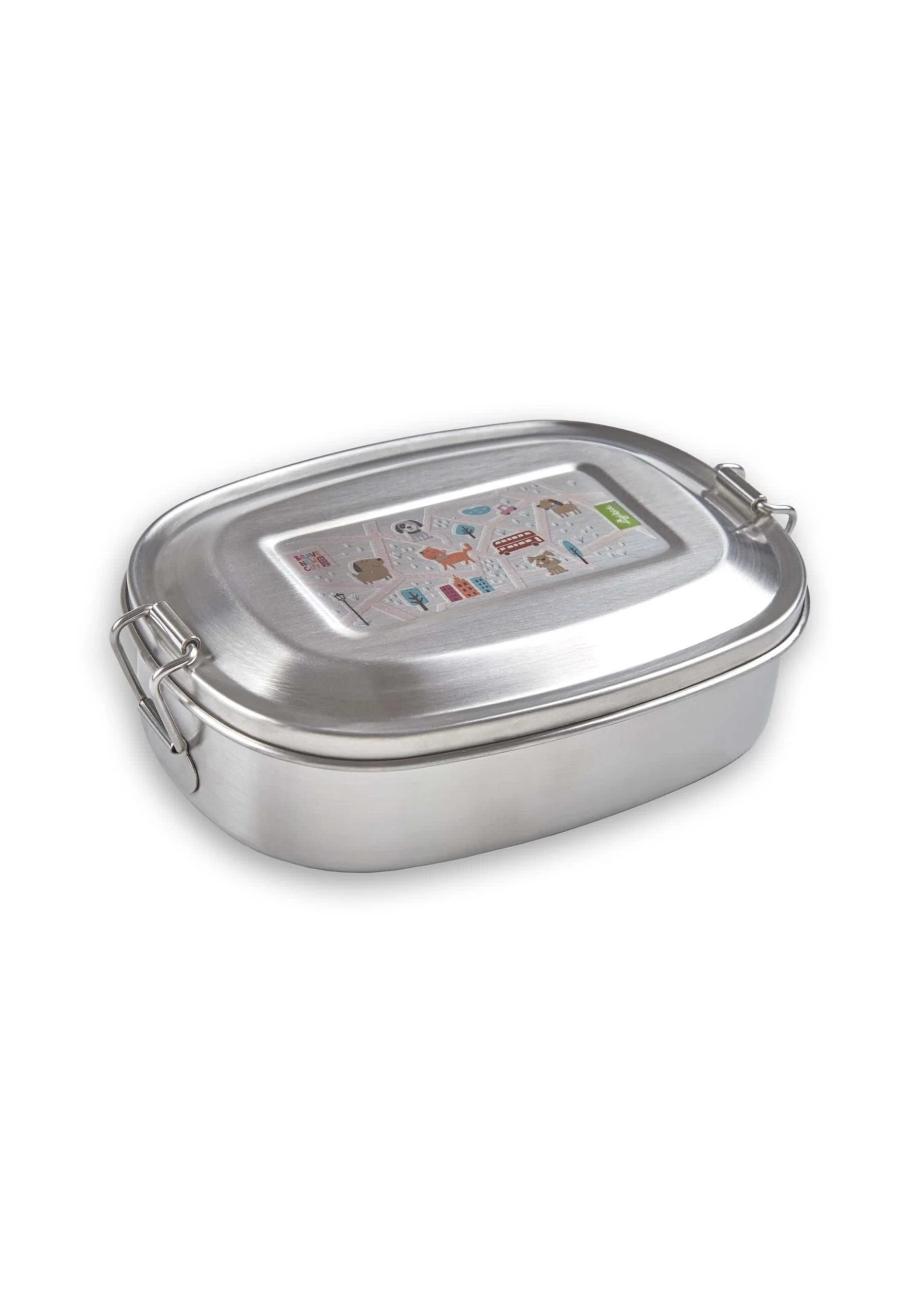 Zu 100 % aus Edelstahl, unzerbrechlich, robust und langlebig und somit besonders nachhaltig sind die neuen Brotdosen der sigikid Green Serie. Ihr schlichtes Design und ihre handliche Größe von 17x9x5 cm machen sie zu einem beliebten Begleiter für Schule, Kindergarten und Ausflug. Dank Trennwand im Innern der Dose können Obst und Gemüse separat aufbewahrt werden. So bleibt das Pausenbrot appetitlich und weicht nicht auf. Hergestellt wird die Lunchbox aus lebensmittelechtem Edelstahl, welches absolut geschmacks- und geruchsneutral sowie hitzebeständig ist. Auf eine Innenbeschichtung wurde bewusst verzichtet. Um den farbigen Print zu schonen, empfehlen wir die Reinigung per Hand. sigikid legt besonderen Wert auf ausgesuchte Materialien und durchdachtes Design. Durch akkreditierte Prüfinstitute finden in der Produktentwicklung und Produktion ständig Prüfungen nach den vorgeschriebenen Normen statt. Die Marke sigikid steht für kuschelige Produkte, die Emotionen wecken und Eltern und Kindern gleichermaßen ein gutes Gefühl vermitteln. Seit über 50 Jahren folgt sigikid einem klaren Leitsatz: FIRST CLASS FOR KIDS! Wir machen die Welt von Familien von Anfang an kuscheliger und bunter. Achtung! Deckel nicht mit kochend heißem Wasser übergießen, Motiv kann verwischen! Vor dem ersten Gebrauch bitte ausspülen. Deckel nicht Spülmaschinengeeignet!