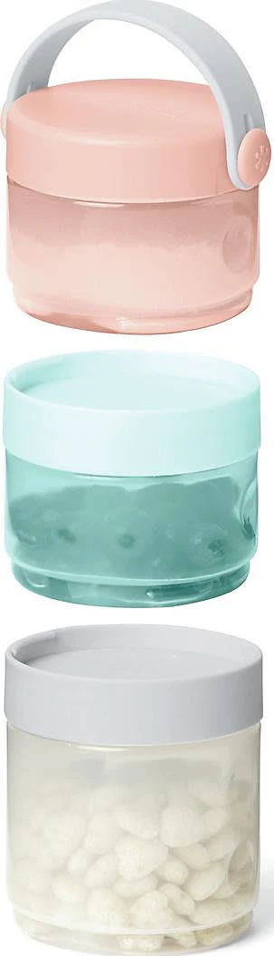 Diese Skip Hop Babynahrungsbehälter lassen sich einzeln oder zusammen anwenden. Dank Ihrer robusten Beschaffenheit können sie eingefroren und in der Spülmaschine gereinigt werden.