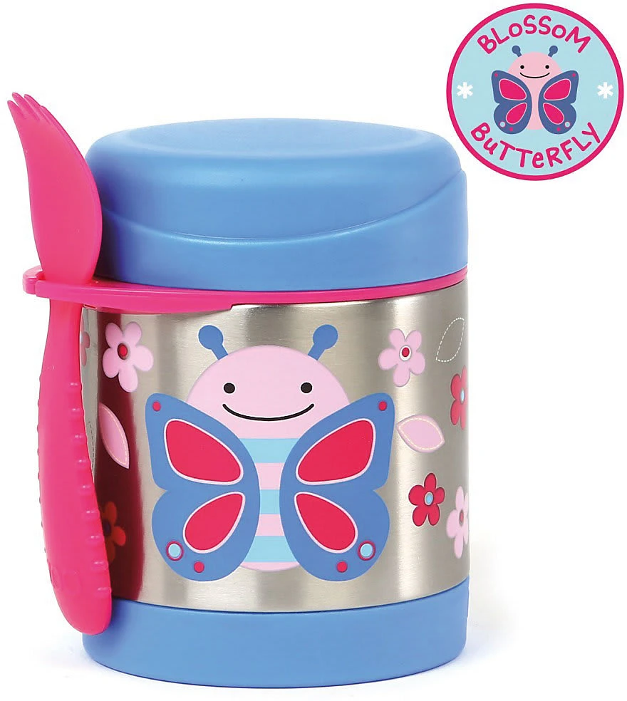 Die Dose von SKIP HOP wird nicht nur von einem süßen Tier verziert, sondern hält auch Babys Essen warm. Im praktischen Set enthalten ist eine kleine Gabel, die durch ihre runde Form und die kurzen Zinken ideal an kleine Kinder angepasst ist. Die Box selbst besteht aus hochwertigem und langlebigem Edelstahl. Die Warmhaltebox ist die perfekte Ergänzung zu den Trinkflaschen von SKIP HOP.