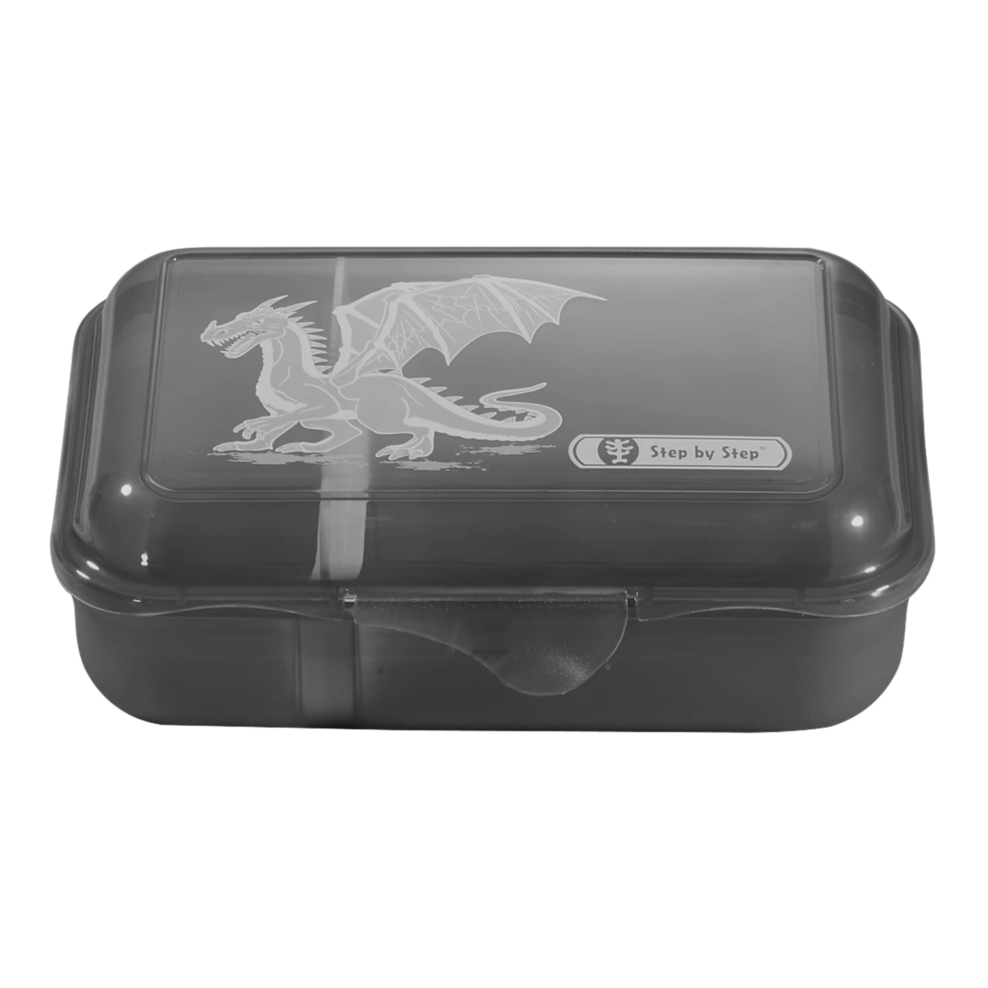 Herausnehmbare Trennwand: Die Brotzeitdosen von Step by Step passen in die Fronttasche aller Step by Step Schulranzen-Modelle und bieten ausreichend Platz für Pausenbrote, Obst oder Gemüse und Süßigkeiten. Dank der herausnehmbaren Trennwand kann die Lunchbox in zwei Fächer unterteilt werden. So können z.B. belegte Pausenbrote oder Gemüsesticks von vorgeschnittenen Obststücken oder Keksen getrennt transportiert werden. Damit die Brotzeitdose auch am darauffolgenden Tag einsatzbereit ist, kann sie einfach hygienisch in der Spülmaschine gereinigt werden. Einfaches Öffnen und Schließen: Die Brotbüchse lässt sich mithilfe des Klickverschluss leicht öffnen und auch wieder verschließen und ist somit ideal für kleine Kinderhände. Außerdem sind der Dosendeckel und das Unterteil miteinander verbunden, sodass kein Teil verloren gehen kann. Damit die Lunchbox keine schädlichen Stoffe an das Essen abgibt, werden bei der Produktion keine Weichmacher verwendet.