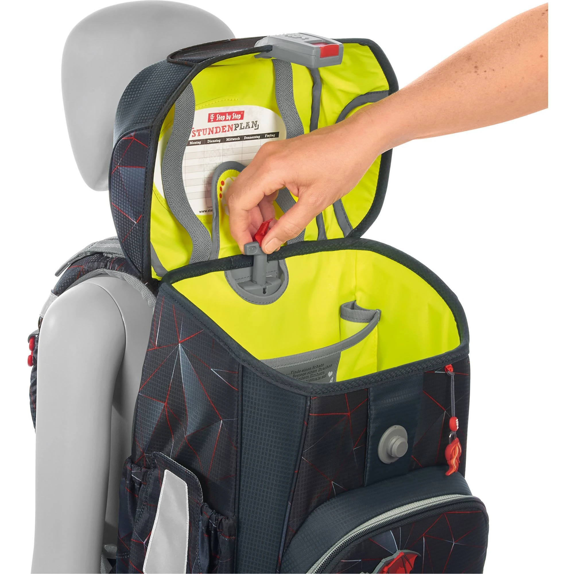 Der Cloud begeistert durch besonders leichtes Material und das höhenverstellbare Tragesystem, das sich Ihrem wachsenden Kind anpassen kann. Die ergonomische Rückenpartie, das Rückenpolster, sowie Hüftflosse, Brustgurt und Lageverstellriemen sorgen für ein optimales Trageerlebnis. Für die individuelle Gestaltung können Magic Mags, ganz nach dem Geschmack Ihres Kindes, angebracht werden. Im geräumigen Hauptfach gibt es jede Menge Platz für alles, was im Unterricht gebraucht wird, zusätzlich können die zwei Seitentaschen nach außen wachsen und so im Inneren für genügend Stauraum sorgen. Das Set besteht aus: Schulranzen, Federmäppchen (komplett bestückt mit Markenstiften), Schlamperetui, Sportbeutel und 3-teiligem Magic Mags Set. Schulranzen Außenmaß: 28 cm x 20 cm x 37,5 cm / Gewicht: ca. 990 g / Volumen: ca. 19 l