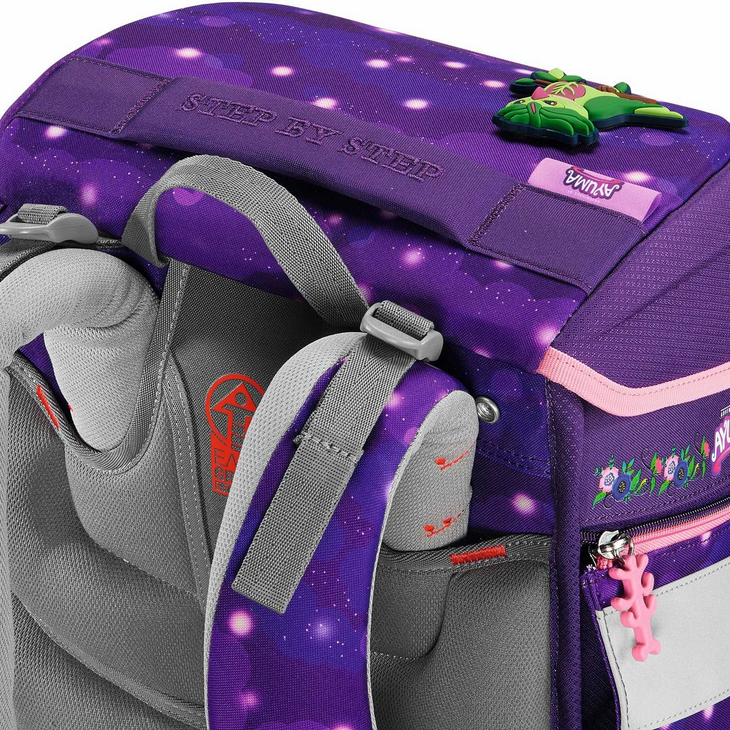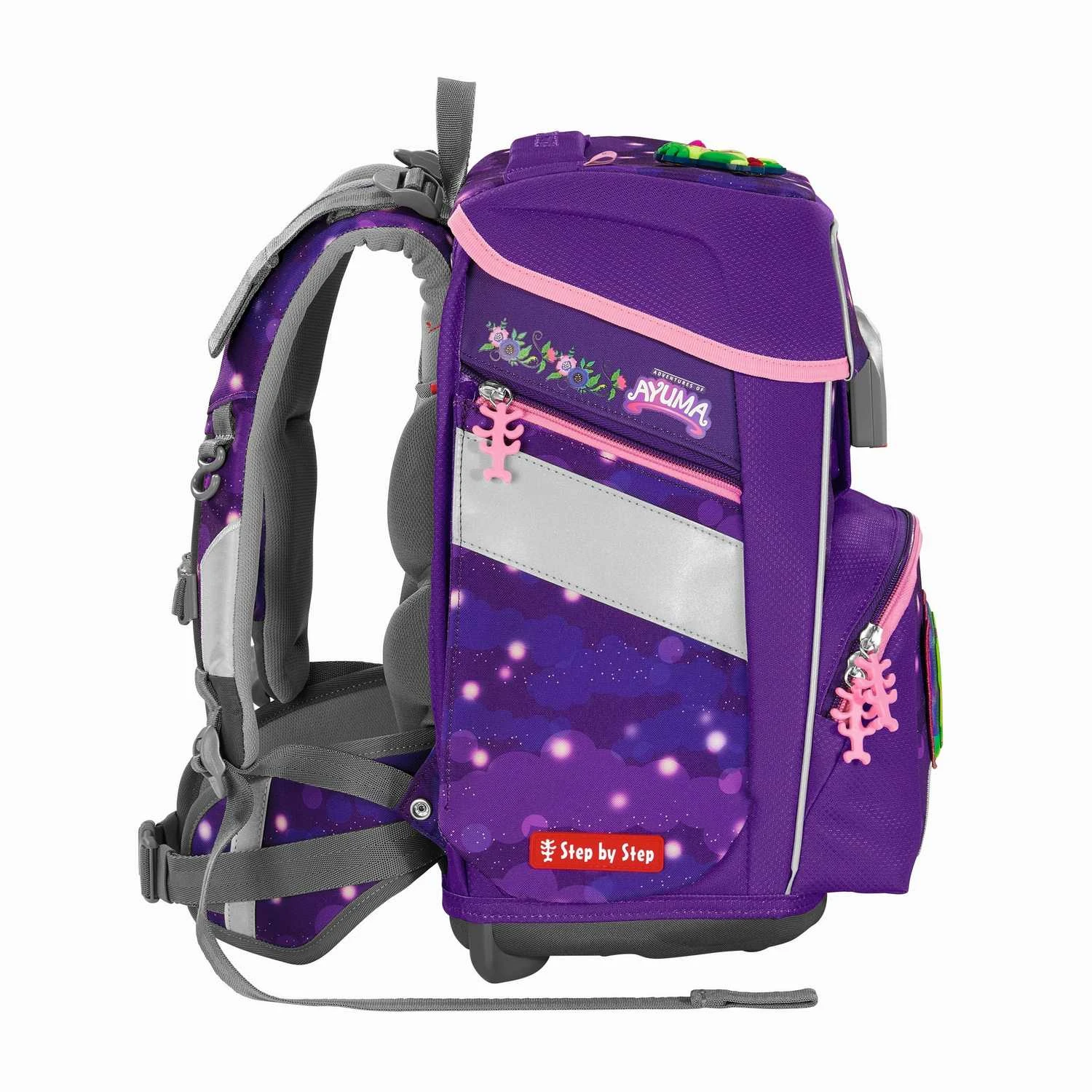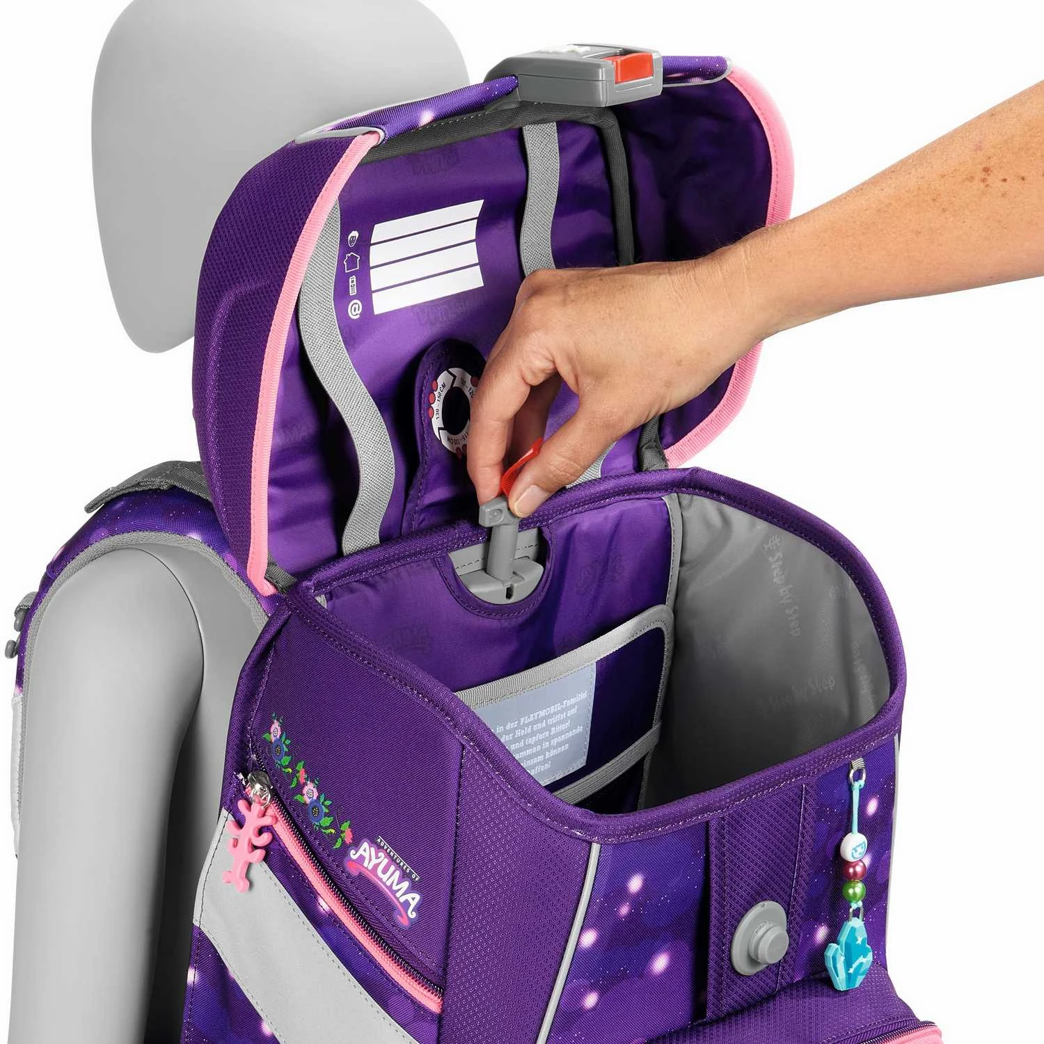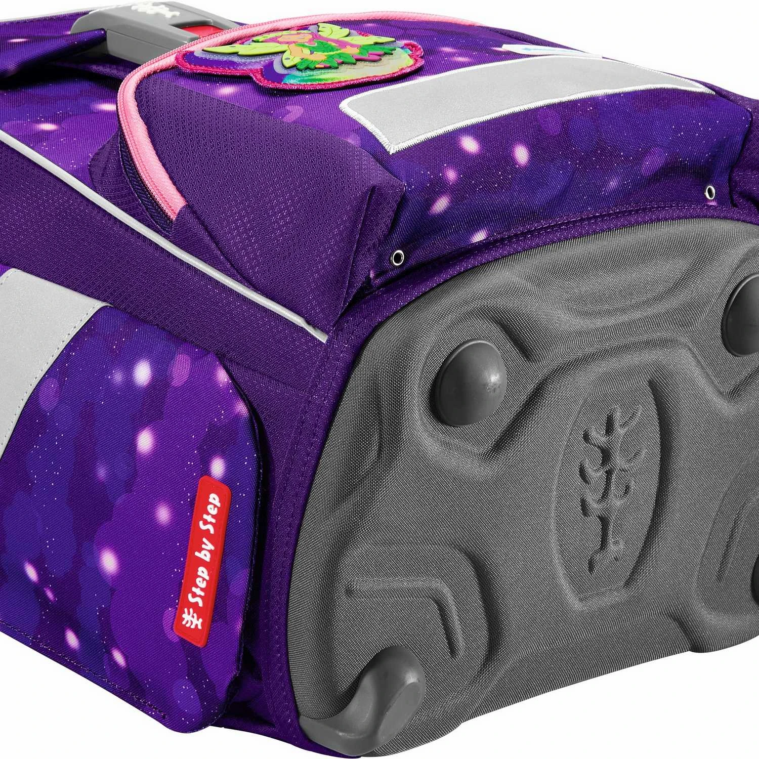 Alle Step by Step Modelle werden klimaneutral und vegan hergestellt. Die verwendeten Textilien für den Schulranzen bestehen zu 100 % aus recycelten PET-Flaschen. Der Schulranzen wurde mit wasserabweisendem Material – 100 % PFC-frei entworfen.