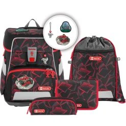 Der Space begeistert durch besonders leichtes Material, großes Fassungsvermögen und das höhenverstellbare Tragesystem, das sich Ihrem wachsenden Kind anpassen kann. Die ergonomische Rückenpartie, das Rückenpolster, sowie Hüftflosse, Brustgurt und Lageverstellriemen sorgen für ein optimales Trageerlebnis. Für die individuelle Gestaltung können Magic Mags, ganz nach dem Geschmack Ihres Kindes, angebracht werden. Im geräumigen Hauptfach, das mit praktischem Fidlock-Magnetverschluss geschlossen wird, gibt es jede Menge Platz für alles, was im Unterricht gebraucht wird, zusätzlich können die zwei Seitentaschen nach außen wachsen und so im Inneren für genügend Stauraum sorgen. Das Mäppchen kann platzsparend im Schulranzen-Deckel verstaut werden. Set bestehend aus: Schulranzen, Federmäppchen (komplett bestückt mit Markenstiften), Schlamperetui, Sportbeutel und 3-teiligem Magic Mags Set. Schulranzen Außenmaß: 28 cm x 20 cm x 37 cm / Gewicht: ca. 1250 g / Volumen: ca. 20 l