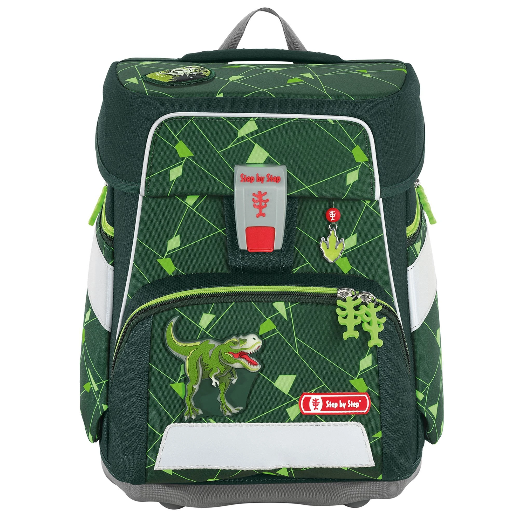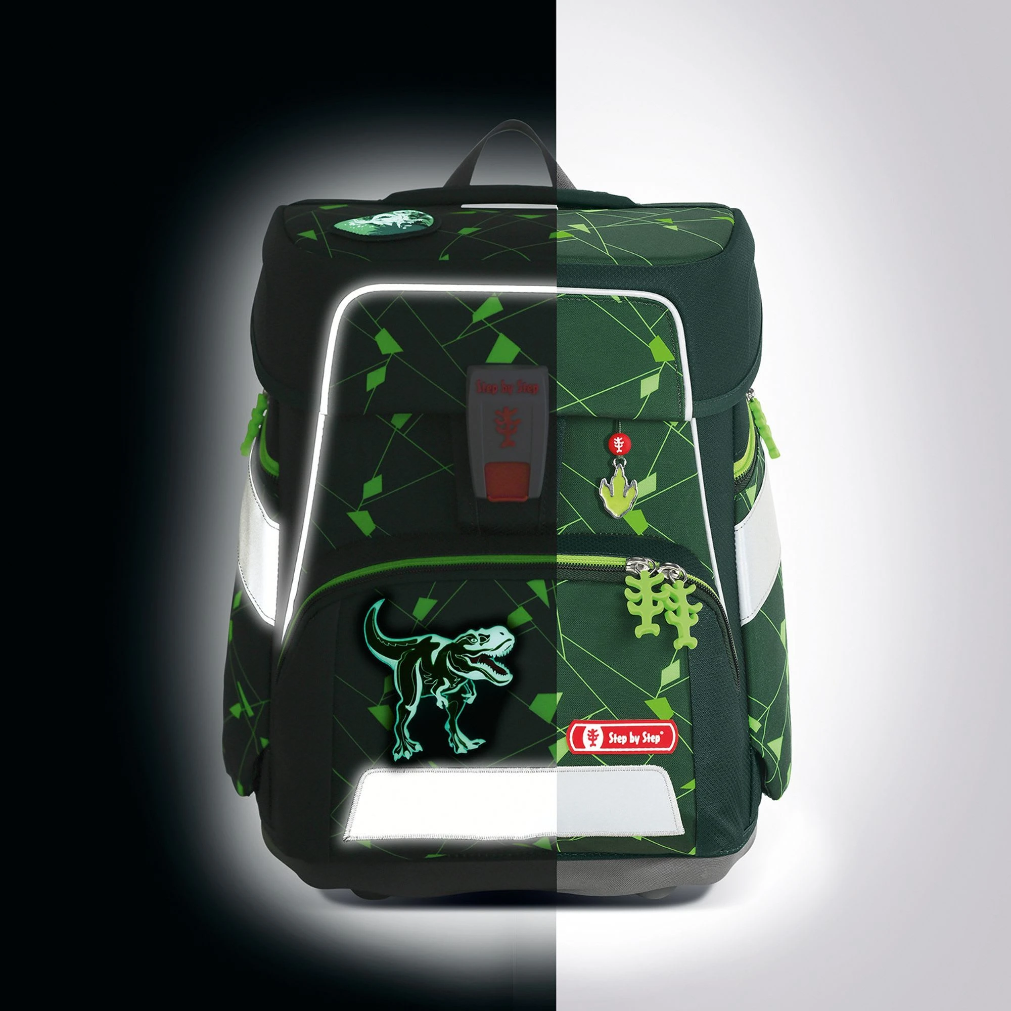 Die Limited Edition “Space Shine” mit großflächigen, reflektierenden Elementen für mehr Sicherheit im Straßenverkehr. Der Space Shine begeistert durch besonders leichtes Material, großes Fassungsvermögen und das höhenverstellbare Tragesystem, das sich Ihrem wachsenden Kind anpassen kann. Die ergonomische Rückenpartie, das Rückenpolster, sowie Hüftflosse, Brustgurt und Lageverstellriemen sorgen für ein optimales Trageerlebnis. Für die individuelle Gestaltung können Magic Mags, ganz nach dem Geschmack Ihres Kindes, angebracht werden. Im geräumigen Hauptfach, das mit praktischem Fidlock-Magnetverschluss geschlossen wird, gibt es jede Menge Platz für alles, was im Unterricht gebraucht wird, zusätzlich können die zwei Seitentaschen nach außen wachsen und so im Inneren für genügend Stauraum sorgen. Das Mäppchen kann platzsparend im Schulranzen-Deckel verstaut werden. Set bestehend aus: Schulranzen, Federmäppchen (komplett bestückt mit Markenstiften), Schlamperetui, Sportbeutel und 3-teiligem Magic Mags Set. Schulranzen Außenmaß: 28 cm x 20 cm x 37 cm / Gewicht: ca. 1250 g / Volumen: ca. 20 l
