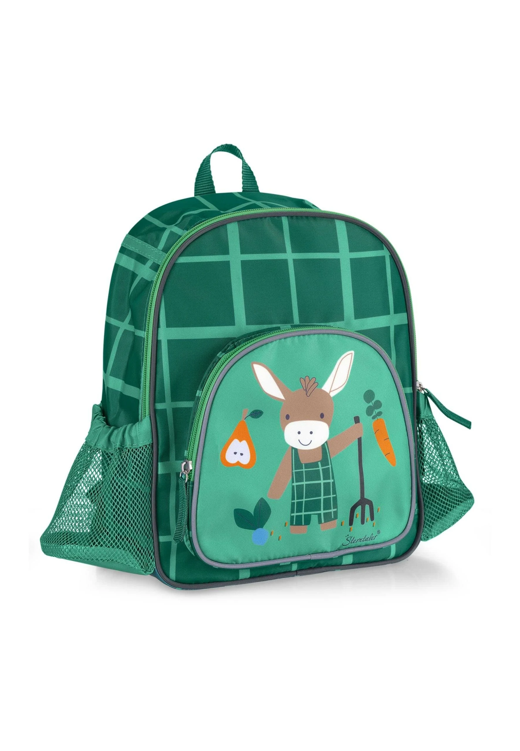 Wunderschöner Kinder-Rucksack mit Motiv Esel Emmilius. Praktisch für den Kindergarten und Freizeit. Hauptfach mit doppeltem Zipper, seitlichen Netztaschen und integriertem Namensschild. Die Bauch- und Schultergurte sind verstellbar. Mit Reflektoren.